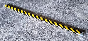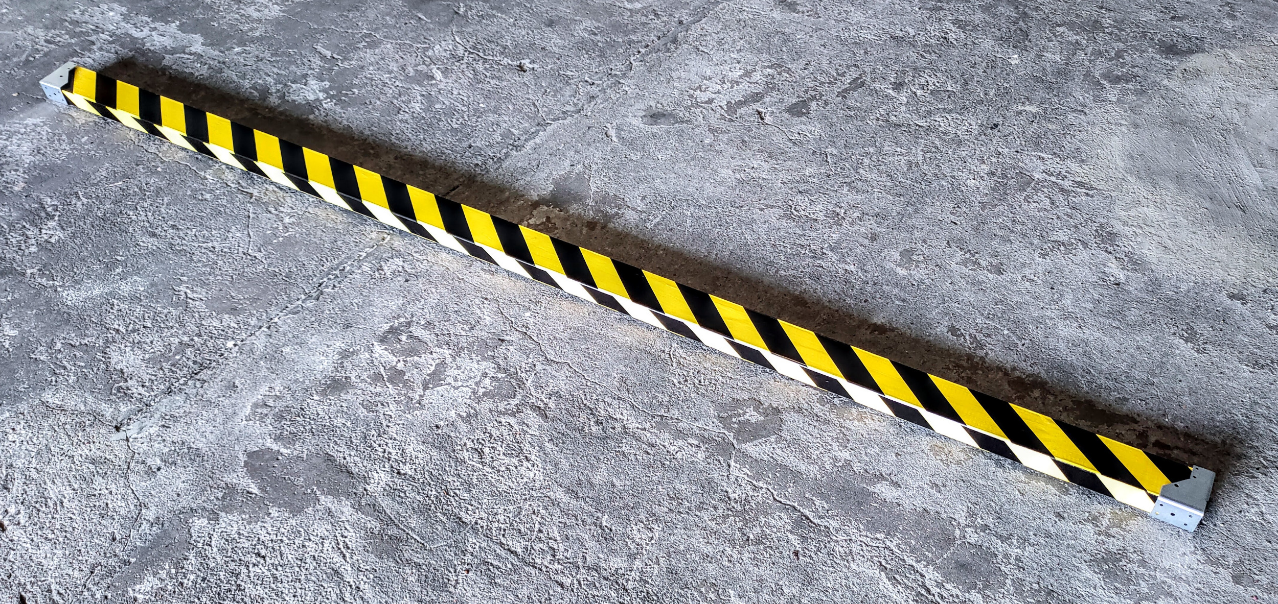 Belka drewniana o przekroju 45x95mm oklejona żółto-czarną taśmą ostrzegawczą z PVC.