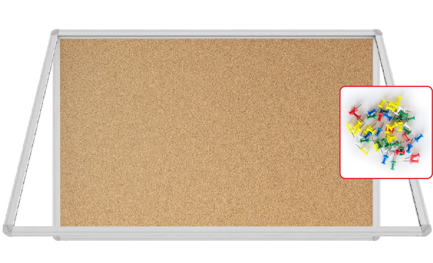- Wysokiej jakości wykończenie - sercem gabloty jest tablica korkowa, która pozwala na łatwe przypinanie dokumentów za pomocą pinezki czy igły. Rama gabloty wykonana jest z wytrzymałego aluminium w srebrnym kolorze.