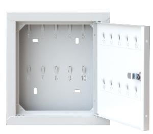 Metalowa szafka przeznaczona do przechowywania kluczy. Dziesięć haczyków na klucze.